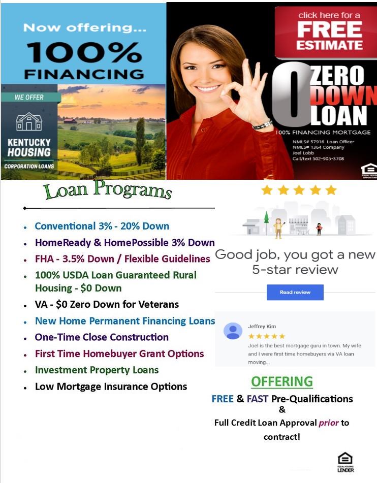 Kentucky first-time home buyer loan requirements for FHA, VA, USDA and Conventional Mortgage Loans in Kentucky?