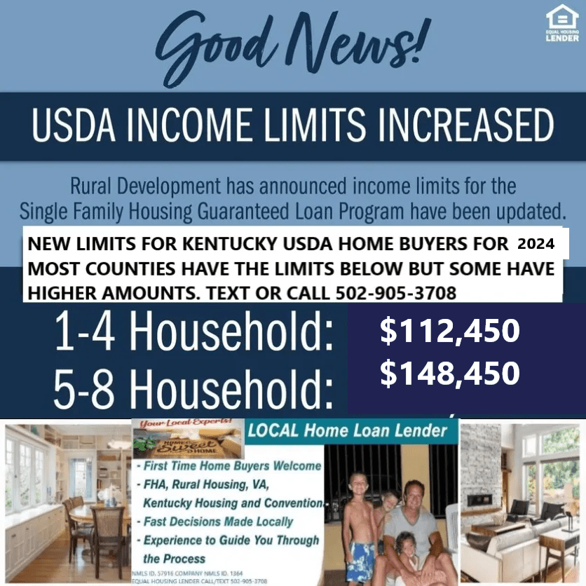 Tagged 2024 KY USDA Rural Housing Income Limits for Kentucky Counties for the Guaranteed RHS Loan, First-time buyer, Kentucky, Mortgage loan, USDA and Conventional Home Loans, usda first time buyer Kentucky
